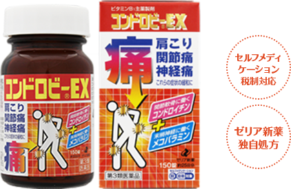 | コンドロイチン硫酸エステルナトリウム 900mg、チアミン硝化物(ビタミンB1硝酸塩)10mg、リボフラビンリン酸エステルナトリウム(ビタミンB2リン酸エステル)15mg、ピリドキシン塩酸塩(ビタミンB6)45mg、ニコチン酸アミド 60mg |